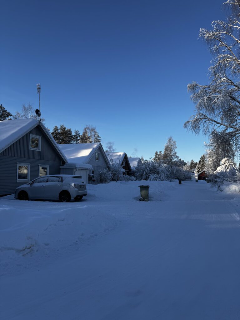 Pogoda nie brała jeńców. Temperatury oscylowały wokół -30°C, a jednego dnia Laponia pokazała swoje najbardziej surowe oblicze, serwując nam rekordowe -45°C. W takich warunkach każdy oddech był przeżyciem, a sauna stała się sercem naszych domów. Korzystaliśmy z niej przy każdej możliwej okazji, hartując ciała i regenerując siły po dniach pełnych wrażeń.